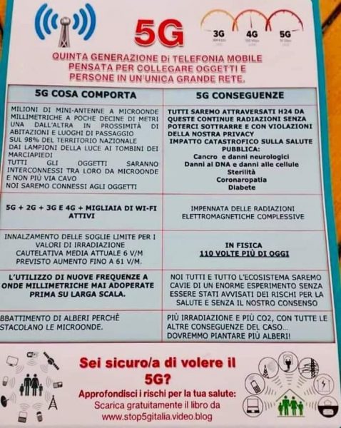 Oggi, spero per l’ultima volta, torno a parlare di 5G, perché anche durante lo scorso weekend siete in tanti ad avermi mandato questo volantino:
