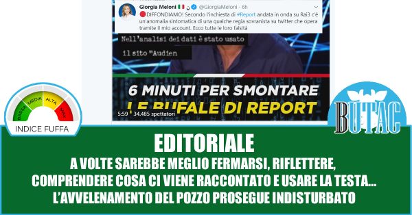 Ma anche senza questo piccolo particolare sulle date concentriamoci sul nocciolo della questione. Il fatto che a maggio le pagine condividessero moltissimi follower non significa che siano gestiti dalle stesse persone, o che Giorgia Meloni abbia acquistato utenti fasulli. Possono esserci altre ipotesi. Quanto raccontato da Report significa “soltanto” che ci sono centinaia di migliaia di utenti online che condividevano in massa le stesse informazioni, e che magari hanno ricevuto suggerimenti su dove mettere il proprio like, che personaggi seguire, cosa condividere, e quando condividerlo. Senza alcun bisogno che le pagine seguite e usate per ricondividere il proprio pensiero politico debbano essere a conoscenza di alcuna regia occulta. Lo stiamo vedendo da tempo anche su BUTAC: profili di persone comuni che in massa ricondividono la stessa notizia, lo stesso link, magari costruendoci attorno un post di propria mano. Molto più complessi da seguire per chi non ha accesso ai Big Data, ma comunque segnale che qualcosa è cambiato.