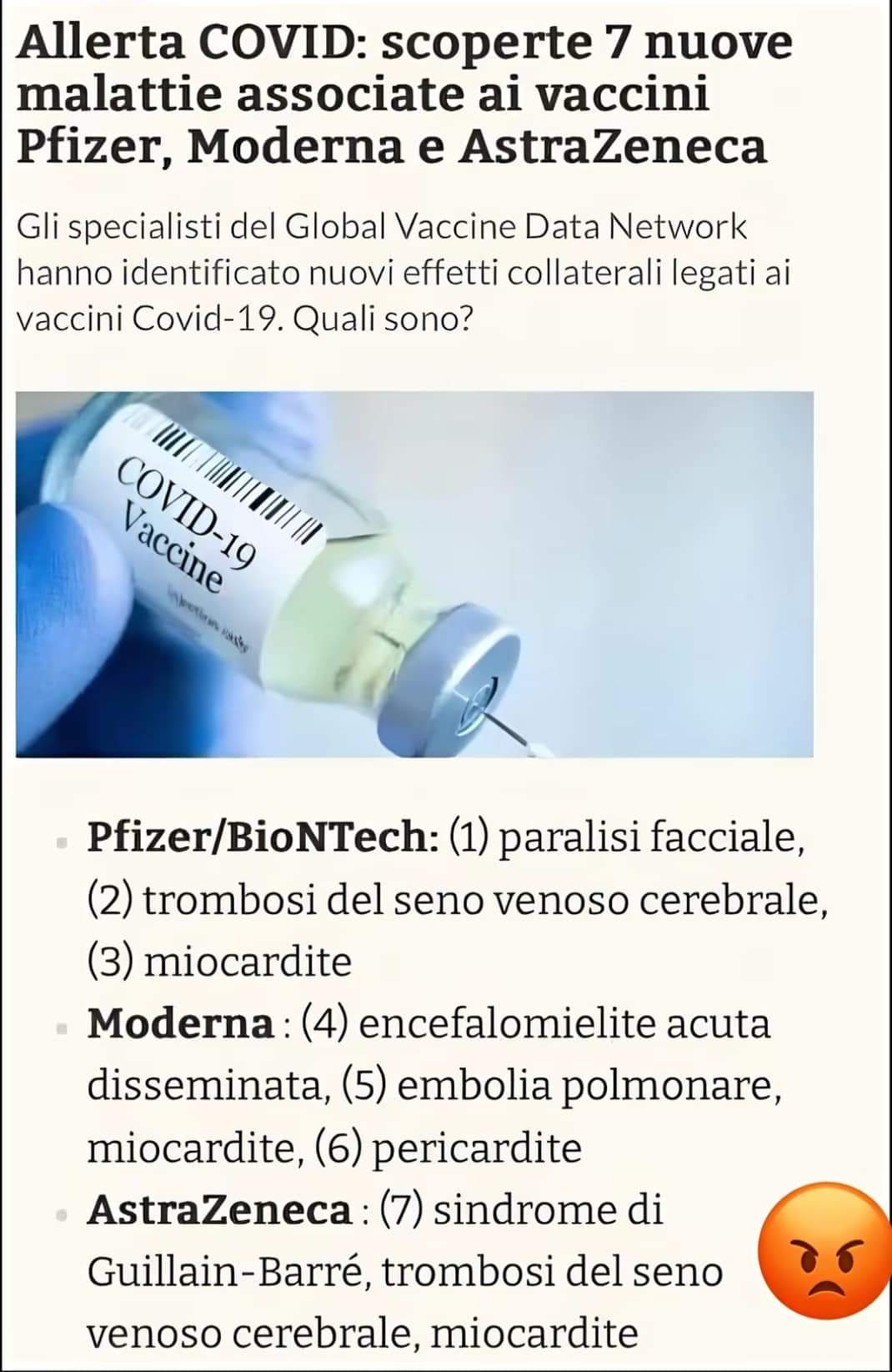 In realtà, con quel titolo esatto, al momento non si trovano articoli pubblicati online in italiano, ed è molto probabile che si tratti di qualcosa di pubblicato poco dopo la partenza della campagna vaccinale del 2021. Il fatto che lo screenshot abbia ricominciato a circolare oggi genera, come sempre, confusione, specie in chi è già stato spaventato di suo negli ultimi quattro anni.