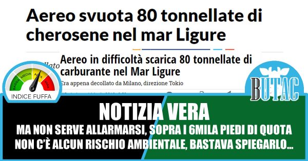 È il caso di notare che si tratta di una notizia mal riportata e che occorre inquadrare meglio. Capita che gli aerei si liberino di carburante in determinate condizioni di volo, le motivazioni possono essere molteplici, ma di solito lo fanno in situazioni d’emergenza. Riporta Repubblica:
