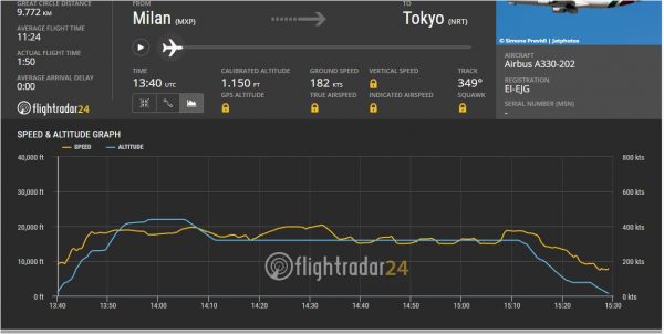 Basta una verifica su Flight Radar per scoprire che l’aereo durante la fase di dumping volava a circa sedicimila piedi d’altezza, che sono decisamente di più di seimila.