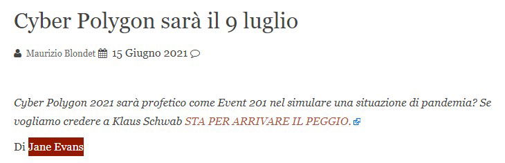 Il resto dell’articolo di Martucci è tutto ipotetico su quel che potrebbe avvenire, e cita una tale Jane Evans, riprendendola dal blog dell’altro freelance del web Maurizio Blondet:
