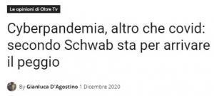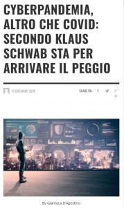 Critici e oppositori del WEF sostengono “che la pandemia Covid non ha prodotto i risultati sperati e ora studiano la nuova pandemia digitale che attacca i settori pubblici e privati”. Secondo i piani, infatti come “noi tutti conosciamo, ma ancora non prestiamo sufficiente attenzione, lo spaventoso scenario di un attacco informatico globale, che porterebbe un arresto completo alla fornitura di energia elettrica, trasporti, servizi ospedalieri, la nostra società nel suo complesso”, ha detto Klaus Schwab…