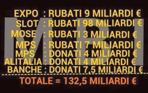 I 3 milardi del MOSE, beh su quelli qualcosa di vero c’è, più di qualcosa in effetti. Curioso notare che molti dei nomi legati alle inchieste sui soldi del MOSE siano nomi legati all’amministrazione regionale tutt’ora in carica, quella del presidente Zaia per intenderci.