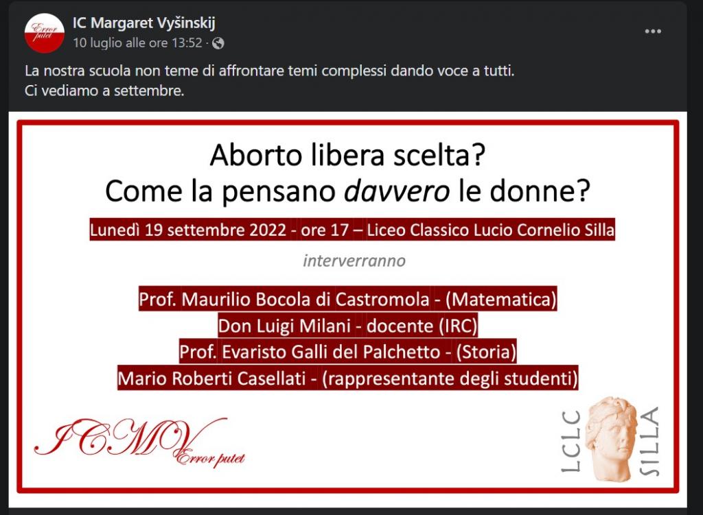 La pagina Facebook IC Margaret Vyšinskij recita nelle info: