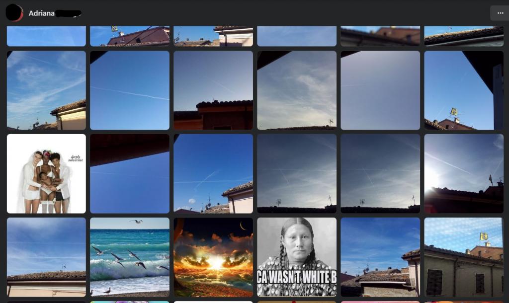 Da febbraio 2019 sul profilo di Adriana le scie chimiche scompaiono quasi del tutto (anche se sporadicamente le fa riapparire a comando). In compenso è tutto un fiorire di screenshot con citazioni di Alessandro Meluzzi, articoli di Primato Nazionale, e l’amico Pietro Faticoni che ricorderete da inizio articolo compare tra i fake condivisi:
