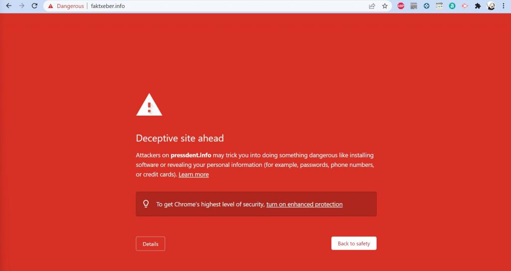 Insomma in Italia sono in tanti a pensare che la mossa di Putin sia stata da grande uomo d’affari. In tanti lo pensano sulla base di un testo che cita come fonte un’agenzia di stampa che agli indirizzi originali (.com e .az) risulta chiusa. Ma le cose non sono così semplici, infatti esiste un Faktxeber nuovo in circolazione, il dominio però è .info, e questo è quello che succede tentando di visitarlo da Chrome:
