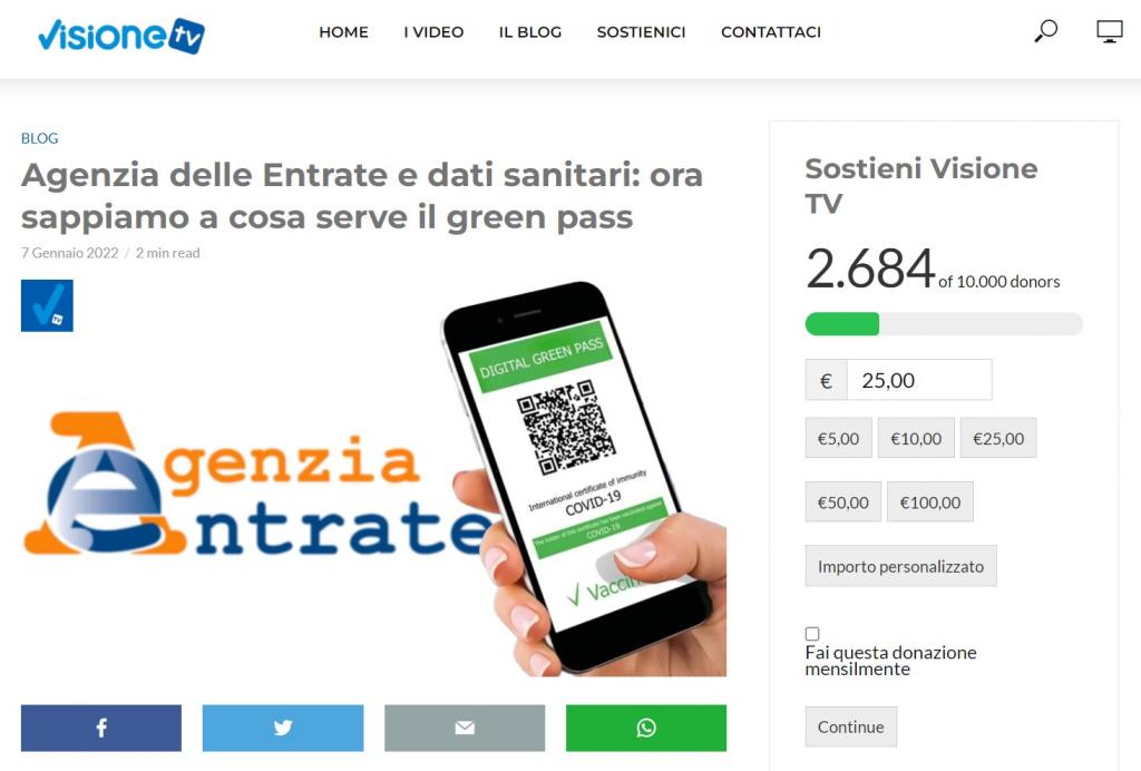 Oggi ci è arrivata l’ennesima segnalazione su una notizia un pelo datata, ma abbiamo comunque scelto di trattarla perché sta tutt’ora circolando. Sto parlando della notizia che vedrebbe il Ministero delle Finanze (se non addiruittura l’Agenzia delle Entrate) avere degli interessi nell’emissione del Green pass.