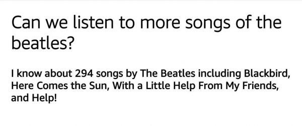 E Alexa ha risposto loro che conosce circa 294 canzoni dei Beatles… ogni singola cosa Alexa dica resta registrata.