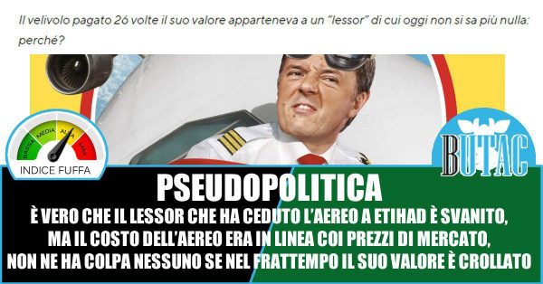 Sia chiaro, in tutto l’articolo del FQ si parla del mistero dietro questa società fantasma UTHL di cui non si sa nulla, ma onestamente a fronte di quanto vi ho riportato poco sopra ogni elucubrazione su chi abbia intascato cosa perde d’interesse. Il costo pagato per il leasing era in linea col valore dell’aereo da nuovo, non ne ha colpa Renzi (o Letta) se nel frattempo il suo valore si è ridotto del 90%.