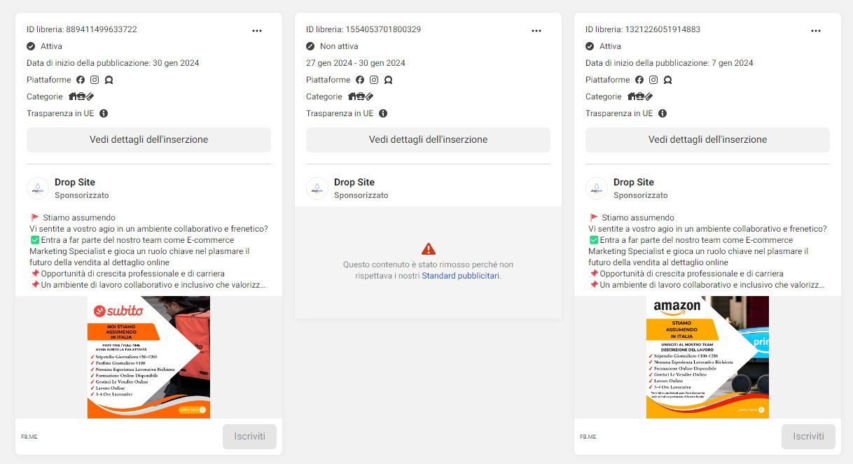 Come già detto in precedenza, quando l’offerta è troppo bella per essere vera è sempre meglio stare lontano, la fregatura è dietro l’angolo. Quello che insistiamo a dire è che Meta dovrebbe esser in parte ritenuto responsabile per questi post sponsorizzati: il link alla chat WhatsApp lo vedono chiaramente, il fatto che la stessa non sia collegata a un’offerta di lavoro da parte di marchi noti come Subito o Amazon pure. E difatti qualche volta gli annunci vengono bloccati: