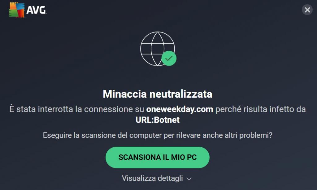 Fatto dal mio PC interviene subito il mio antivirus, che mi avverte: