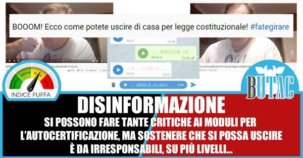 Sia chiaro, come detto in apertura, ci sono tanti motivi di critica a come è stata gestita l’emergenza nel nostro Paese e anche al sistema di autocertificazione, ma audio e video come questi non presentano critiche condivisibili; disinformano col solo scopo di causare confusione e sfiducia in chi li ascolta.
