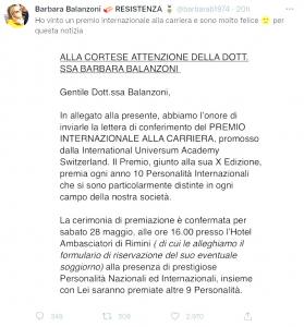 Quindi per capirci siamo di fronte a un premio rilasciato da un’associazione che esiste da svariati anni, ma che non ha alcuna rilevanza a livello internazionale. Con i premi che conferisce, però, l’associazione riesce a dare autorevolezza a soggetti che non hanno in realtà nulla di autorevole. Ne abbiamo già viste svariate di associazioni simili. Ci lascia sempre allibiti come nessuno faccia realmente nulla contro questi soggetti. Rendersi conto che già dodici anni fa c’erano articoli che denunciavano queste scatole cinesi e che in dodici anni nulla sia cambiato fa onestamente pensare che sia inutile, e che hanno ragione le tante Balanzoni del nostro Paese.