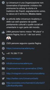 La Universum è una Organizzazione non Governativa d’ispirazione cristiana che promuove la cultura, la storia e le tradizioni dei Popoli, segnatamente uomo, la natura ed il territorio. Le attività della Universum Academy e delle sue sedi spaziano da quelle prettamente culturali a quelle sociali ed umanitarie in ogni parte del mondo.