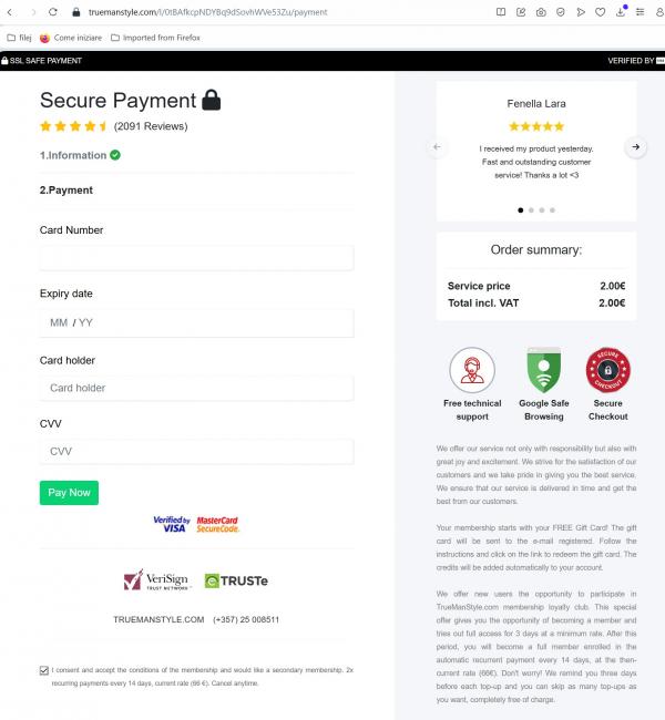 E ovviamente con la scusa delle spese di gestione dell’ordine il numero della vostra carta di credito, et voilà, la magia è fatta: