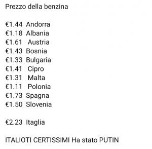 Ci avete segnalato che sui social sta girando un testo coi prezzi della benzina in svariati Paesi, l’immagine è questa:
