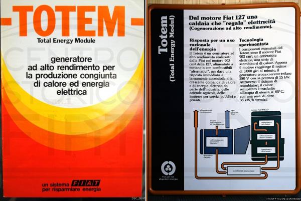 Uno di quei video dal sapore retrò che io amo molto, ma per chi non avesse i 16 minuti necessari facciamo un sunto. Il Totem, o TotEM, fu davvero un prodotto pionieristico per l’epoca: Fiat lanciò questo sistema di microcogenerazione nel 1977 (e non novant’anni fa; chissà da dove arriva quel numero riportato da Beppe), basato su un motore derivato dalla 127. Produceva contemporaneamente elettricità e calore, un’idea brillante per aumentare l’efficienza energetica.