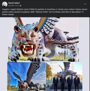 Leggete i segni! Vedrete come il Male ha gettato la maschera e i tempi sono maturi. Hanno messo questa statua davanti al palazzo delle “Nazioni Unite” ed è la Bestia, descritta in Apocalisse 13.
