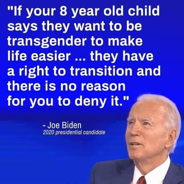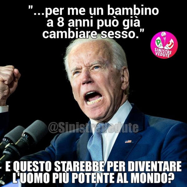 In pratica durante un incontro con gli elettori in un municipio una mamma ha chiesto a Biden che intenzione avesse con le leggi introdotte da Trump nei riguardi della comunità LGBTQ, e Biden ha risposto che avrebbe cambiato quelle leggi, che non ci deve essere discriminazione. Non ha detto che un bambino di otto anni ha a prescindere il diritto di fare la transizione. Abbiamo già spiegato la questione bambini trans altre volte qui su BUTAC, mi piacerebbe rileggeste i vecchi articoli dove spieghiamo che nessuno fa la transizione in un’età così giovane, ma che esistono farmaci che possono allontanare la pubertà evitando poi interventi invasivi quando sarà il momento. Stiamo parlando di un numero di casi davvero limitato, comunque, ma di casi esistenti e per cui è sempre meglio avere una legislazione non discriminatoria.