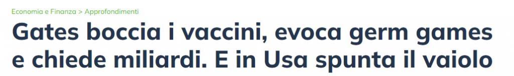 Sia chiaro, dopo questo Money riporta correttamente la questione “germ games”, anche se nemmeno questa è una novità. Sono anni che si fanno questo tipo di esercitazioni, e anzi, a inizio pandemia alcuni complottari della prima ora sostenevano che le esercitazioni fossero in realtà prove generale della pandemia che ora stiamo vivendo. Ovvero che fossero fatte apposta non per aiutarci a contrastare eventi pandemici, ma per insegnare ai Potery Forty cosa fare per essere credibili nella messa in scena.