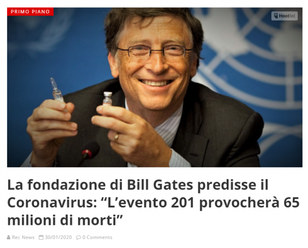 Su Rec News concludono l’articolo con una frase che potrebbe venire direttamente da un sito di complottisti, visto che, parlando di Bill Gates, riportano: