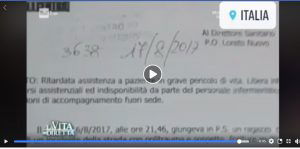 Viene mostrata per un attimo la parte iniziale di una lettera, indirizzata al “Direttore Sanitario P.O. Loreto Nuovo” di Napoli, datata 17 agosto 2017, nel cui oggetto si lamenta una “ritardata assistenza a paziente in grave pericolo di vita”; il fatto è accaduto, a quanto si legge, il 6 (o 16) agosto alle ore 21.46. Soffermiamoci un attimo su questa data e questo orario: vi sembra che le persone raffigurate nel video siano in abbigliamento estivo, e che possano essere le nove di sera passate? Forse ci troviamo a Capo Nord, durante il periodo del Sole di Mezzanotte?