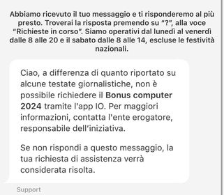 Salve, inoltro la risposta dell’help desk dell’app IO: