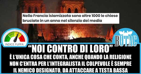 Nel 2017 si parlava di chiese date alle fiamme per far posto a moschee, nel 2014 si attribuivano colpe non corrette in un altro caso simile, sempre in Francia. E oggi si continua alla stessa maniera. Quanto segue non è una sbufalata, ma una riflessione su un certo modo di fare informazione. Abbiamo oltre 4mila articoli su BUTAC, se l’unica cosa che v’interessa sono le bufale potete rivolgere il vostro click altrove.