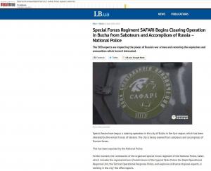 Ieri tgcom24 ha echeggiato una specie di gioco al massacro denunciato dal sindaco di Bucha: hanno fatto un safari con i civili. Paragone strano perché Safari è il battaglione speciale che come vedete il 2 aprile inizia un’operazione sì, di bonifica esplosivi e quant’altro ma anche di repulisti di sabotatori. Dove sono finiti i sabotatori? Non ne hanno trovato nessuno? O forse solo quel cadavere che ieri è apparso sullo schermo alle spalle di Giordano, ma lui non se ne è accorto, che ha ancora il bracciale bianco dei filorussi? E’ una fonte ucraina, quel giornale, non la Tass. SE c’erano sabotatori che fine hanno fatto ?