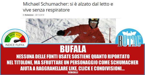 O meglio, è vero che ilGiornale.it a febbraio 2018 aveva riportato il messaggio di un medico che diceva di non perdere le speranze, che poteva ancora esserci possibilità di ripresa per Schumacher. Ma bastava leggere con attenzione articolo e sua fonte per rendersi conto che se le cose fossero come raccontate ci vorrebbe conferma che Schumacher fosse in un coma definito Sindrome Apallica, come i casi portati ad esempio. Ma il medico citato dal Giornale (e ripreso da tante testate sensazionalistiche nello stesso periodo) non ha visitato il paziente, non ha la più pallida idea di come stia, visto anche il riserbo della famiglia sulla questione.