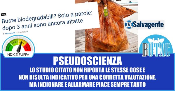 Dopo aver letto le dichiarazioni personali degli autori riportate, ho avuto l’impressione che Enrico Cinotti abbia basato il suo articolo su una forse affrettata traduzione dell’articolo uscito sul sito del National Geographic (https://www.nationalgeographic.com/environment/2019/04/biodegradable-shopping-bags-buried-for-three-years-dont-degrade/). Ed è un peccato, perché c’è molto di più da dire sull’articolo originale e l’articolo de “il Salvagente” ha creato l’ennesimo pretesto