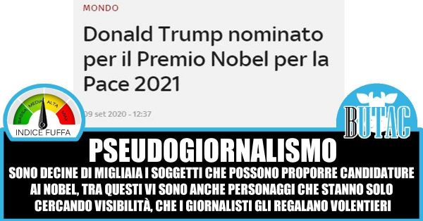 Perché è una cazzata? Innanzitutto perché le vere nomination sono segrete, e qualsiasi giornale non lo specifichi fin dalle prime righe e vi racconti che Trump è stato nominato è un giornale che vale la pena leggere al bagno, quando siete in lockdown e la carta igienica sta scarseggiando. Lo stesso vale se si tratta di una blasonata testata giornalistica come SkyTg24: volendo potete leggere l’articolo sul vostro tablet e poi usare quello. Specie visto che nessuno su Sky ha specificato quanto detto sopra. E già ripetuto su BUTAC più volte negli anni.