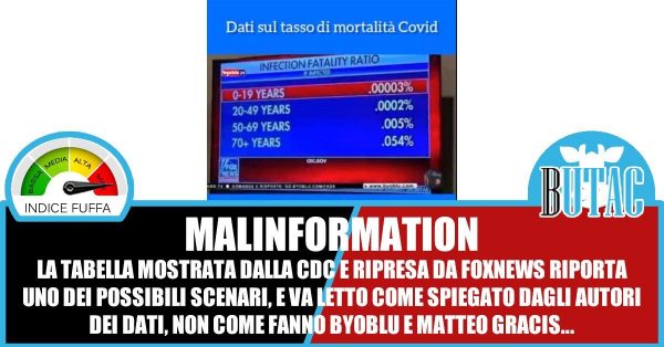 I numeri che vedete sono quelli riportati dai cinque scenari che a inizio settembre la CDC ha ipotizzato, cinque scenari che rappresentano quello che si ritiene siano i dati da usare nei modelli previsionali per i contagi da Sars-Cov-2. Sono numeri che si riferiscono ai dati raccolti fino all’8 agosto 2020. Tutte cose che Fox, Gracis e ByoBlu non specificano.