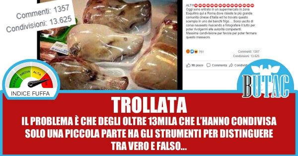 ALT!!!⛔⛔⛔⛔⛔⛔⛔⛔⛔⛔⛔⛔⛔⛔⛔Oggi sono entrato in un supermercato in zona Esquilino qui a Roma,dove risiede la più grande comunità cinese d’Italia ed ho trovato questo scempio in uno dei banchi frigo…. Sono uscito di corsa nauseato riuscendo a fotografare il tutto per poter rivolgermi alle autorità competenti.
