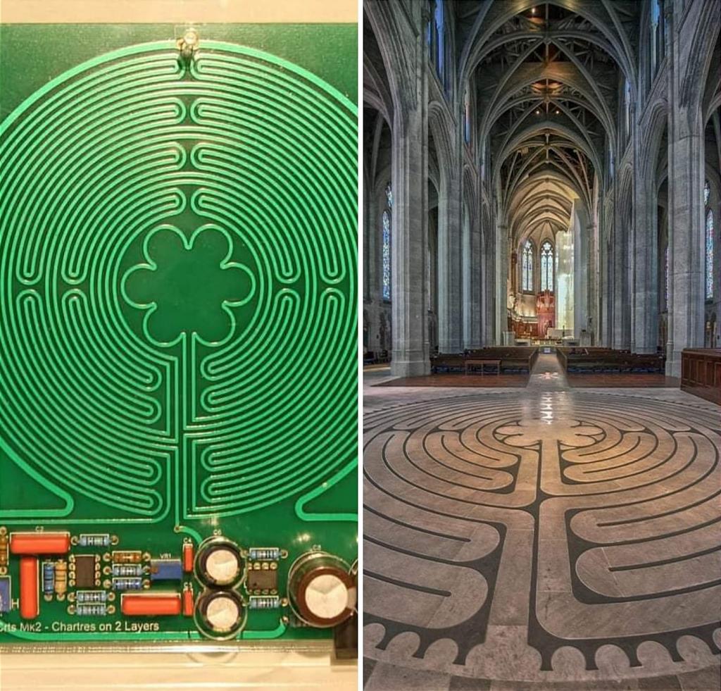 Quindi chi l’ha fatto stava intenzionalmente copiando il labirinto di Chartres, senza alcuno specifico motivo se non la fuffa mistica di certe correnti poi evolute nella New Age. Sì perché vedete, quel circuito stampato serve per emettere la risonanza di Schumann, ma esiste anche in altre versioni senza la stampa del labirinto di Chartres: