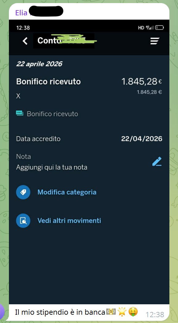 Bonifico ricevuto 1845,28 Il mio stipendio è in banca!