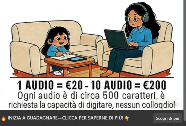 Ogni audio è di circa 500 caratteri, è richiesta la capacità di digitare, nessun colloquio!🔥 INIZIA A GUADAGNARE — CLICCA PER SAPERNE DI PIÙ! 👇