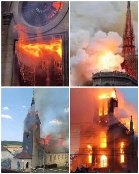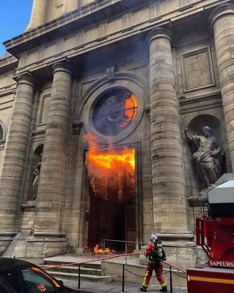La prima foto riguarda l’incendio della Chiesa di Saint Sulpice, e la natura dolosa dell’incendio rientra tra le possibili cause.