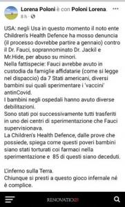 USA: negli Usa in questo momento il noto ente Children’s Health Defence ha mosso denuncia (il processo dovrebbe partire a gennaio) contro il Dr. Fauci, soprannominato Dr. Jackil (sic) e Mr.Hide, per abuso su minori.