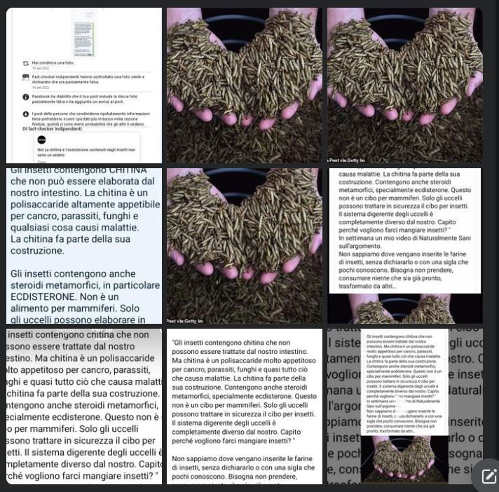 Non è possibile che in poco più di due settimane mi ritrovi a parlare per la terza volta di insetti commestibili. A quale lobby italica dà fastidio l’idea che siano introdotti anche nel nostro Paese prodotti (davvero pochi finora) che contengono tra gli ingredienti gli insetti? La risposta non ce l’abbiamo, quello che sappiamo è che dopo Meluzzi e Stramezzi a disinformare in merito ora abbiamo anche soggetti meno noti, ma che contribuiscono all’information disorder (tradotto: disturbo informativo) grazie a post social e video.