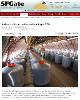 Sempre in questo video, ci mostrano le immagini ben note dell’interno di un volo di test. I soliti voli durante i quali, per simulare il carico passeggeri a bordo, si usano taniche piene di liquido a volte tra loro collegate in maniera da simulare anche un improvviso spostamento di peso. In alcuni casi, simulano in generale anche il carico dell’aereo.