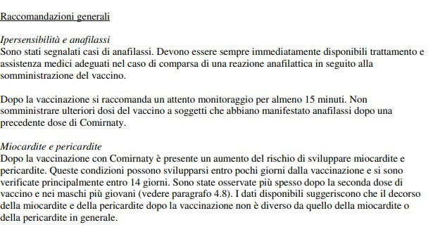 Ma proseguiamo: anche la parte relativa a pericardite e miocardite infatti – come sa chi ci segue da tempo – non è una novità di novembre.