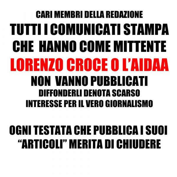 Su BUTAC, appena ho visto la notizia circolare, ho taggato i primi che l’avevano presa per buona, inviando loro il link a tutti gli articoli con protagonista Lorenzo Croce e l’AIDAA, oltre che il posterino fatto ormai svariati anni fa: