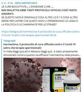 Su uno dei tanti canali Telegram che monitoro (in questo caso un canale dei guerrieri vuvuzela, i peggiori sfigati che la pandemia ci abbia regalato) ho trovato l’ennesimo articolo che parla di ivermectina. “Articolo” probabilmente è la parola sbagliata, è un testo anonimo, che riporta qualche link, e che è stato scritto dagli admin di un’altra pagina Telegram, che ovviamente inseriamo in black list.