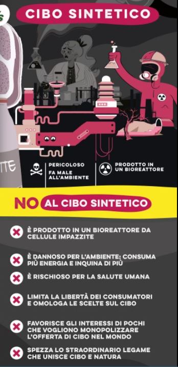 Sostenere le proprie ragioni (economiche e commerciali) è legittimo; farlo in questo modo, inventando bugie e cercando di terrorizzare la gente sul nulla, è una ripugnante manipolazione. Ricordiamo che attualmente le tecniche di produzione di carne e latte artificiale non sono pronte, si devono mettere a punto i mezzi colturali e la loro produzione. Adesso si producono quantità troppo ridotte e a prezzi troppo alti per essere immessi sul mercato, ma è solo questione di tempo, e probabilmente non sarà molto, a giudicare da quanto fanno paura a Coldiretti.