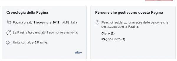 Non ho trovato traccia di un post precedente, la pagina, pur attiva dal 2018, risulta avere solo questo messaggio presente in bacheca. Facebook come prima cosa, per merito del menù “trasparenza delle pagine”, ci mostra che gli admin sono 2 a Cipro e 1 in UK, non proprio italianissimi, curioso che si lamentino che il precedente vincitore non fosse italiano.