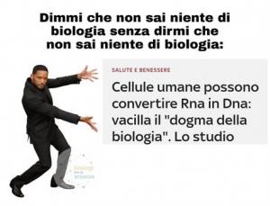 Al di là di questa nota metodologica generale, però, vedremo come in questo caso non siamo neanche di fronte a una scoperta totalmente nuova o radicalmente rivoluzionaria negli studi di biologia. Secondo Sky TG24, “le cellule umane possono convertire l’Rna in Dna. È quanto emerso dai risultati di uno studio dell‘università americana Thomas Jefferson che, se confermati, potrebbero costringere a riscrivere i libri di biologia perché confutano il ‘dogma della biologia molecolare’, l’assunto fondamentale della biologia molecolare secondo cui le informazioni genetiche possano seguire una sola direzione”.