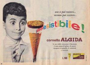 Ed è così che si manipola la memoria di un Paese. La cosa curiosa è che anche nell’articolo di CiboToday si usa la stessa pubblicità che vi ho mostrato qui sopra, unita ai loghi dell’Algida negli anni, e basterebbe questo per capire che l’affermazione che il Cornetto costasse 100 lire nel 1980 è una bufala: