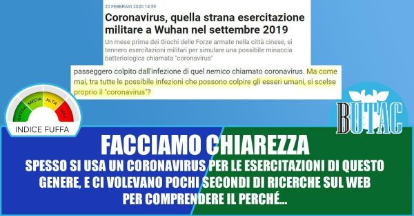 Se c’è stata questa esercitazione (che non metto in dubbio, ho chiesto una fonte a TgCom e mi è stato assicurato che è verificata ma non possono darmela) è abbastanza normale si sia usato un qualche tipo di coronavirus come veicolo dell’infezione. È uno dei virus più comuni e negli anni, in sue forme diverse, ha causato altre epidemie. Perché non avrebbero dovuto?